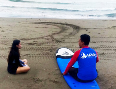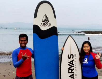 For children, we strictly teach one-on-one. Ketapang Point, Citepus, is a perfect starting point for children. Big waves break outside, and we ride small reforming waves in a safe area with small currents and almost no rocks.