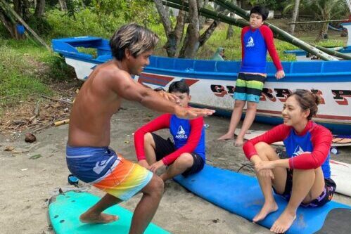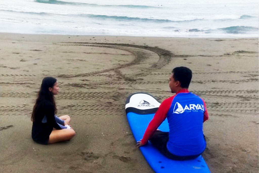 For children, we strictly teach one-on-one. Ketapang Point, Citepus, is a perfect starting point for children. Big waves break outside, and we ride small reforming waves in a safe area with small currents and almost no rocks. In the first few classes, we were happy because there was plenty of white water to make the first steps easier.